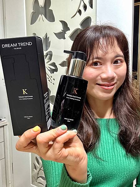 我的御用設計師跟我說完之後,我就回家上網搜尋,好用又不傷髮的捲髮髮品,我就找到了DREAM TREND凱夢K持捲乳,這瓶是屬於造型乳,捲髮乳,可以讓妳快速維持髮廊燙出來的捲度。