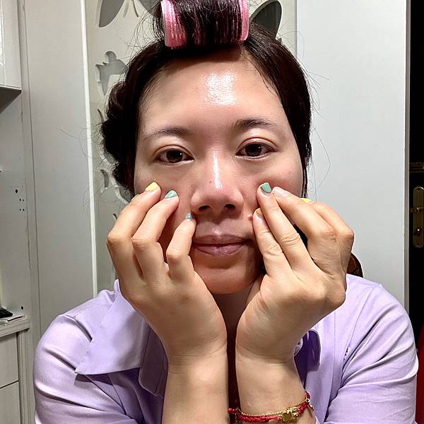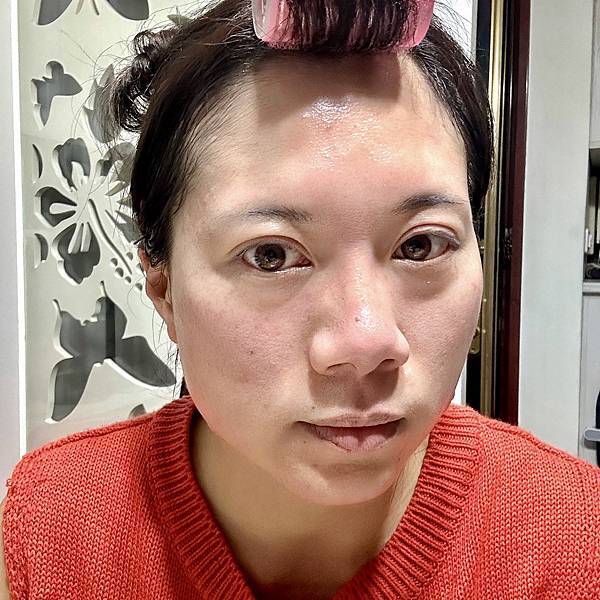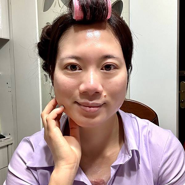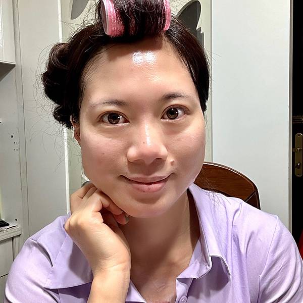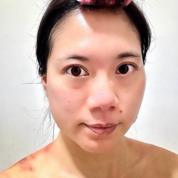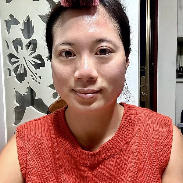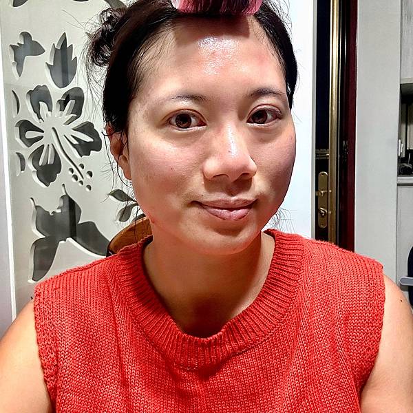 敷後自帶光澤的肌膚,膚色均勻,提亮。