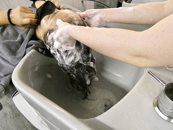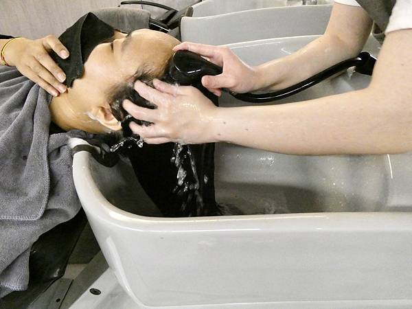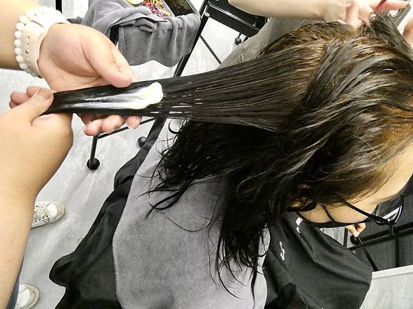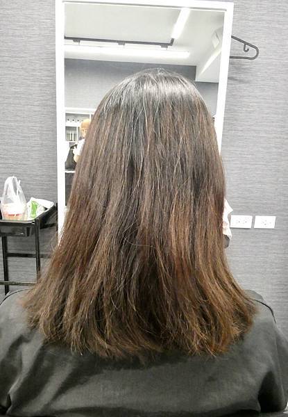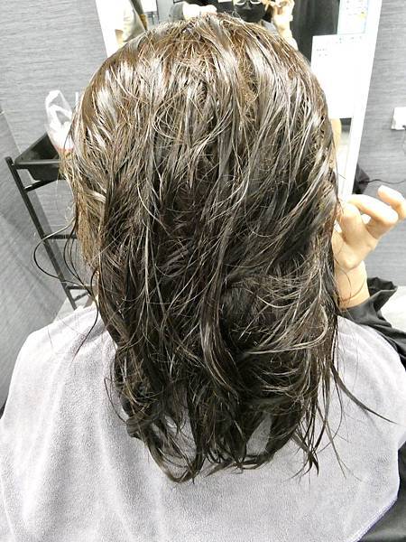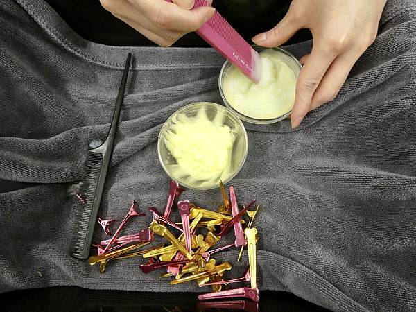 設計師說護髮素不用沖洗太乾淨,這樣會比較好。