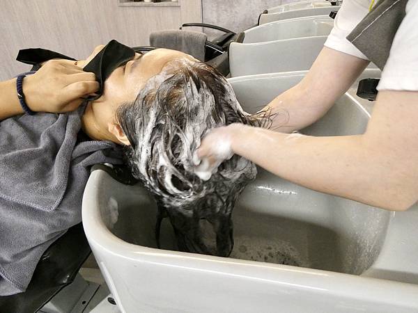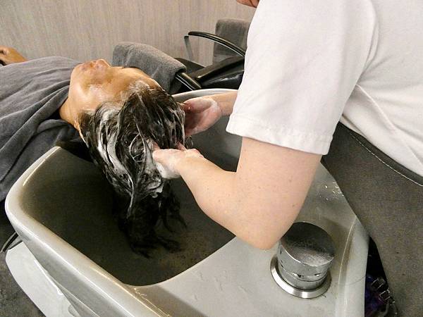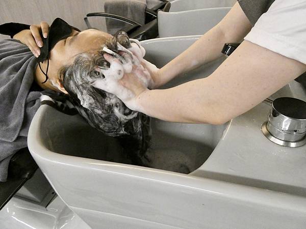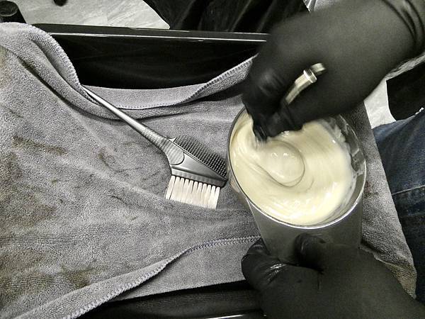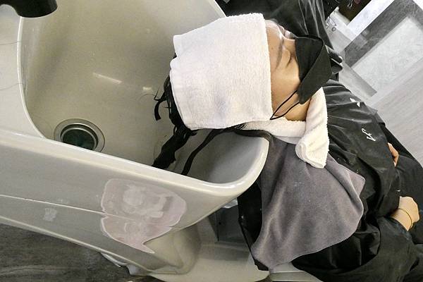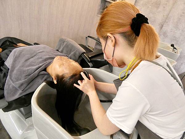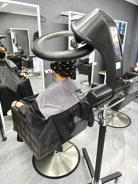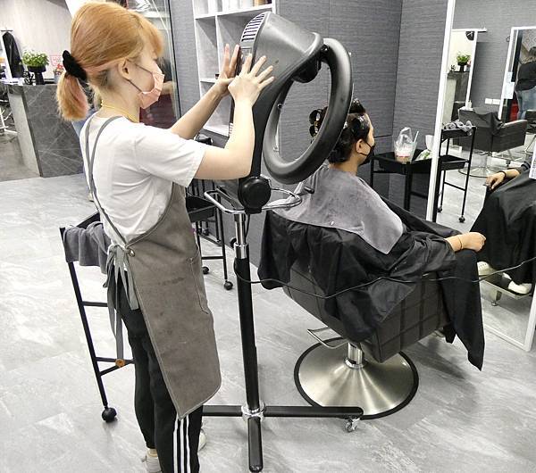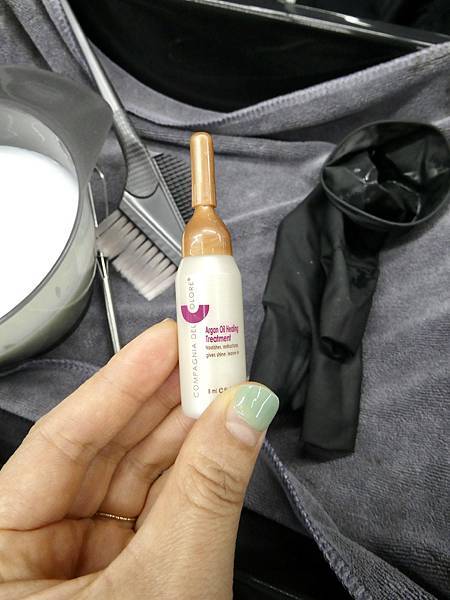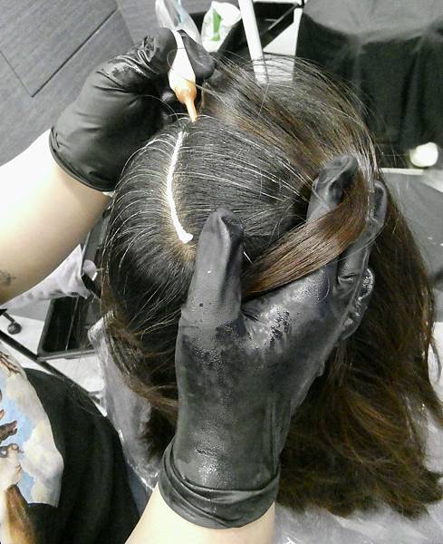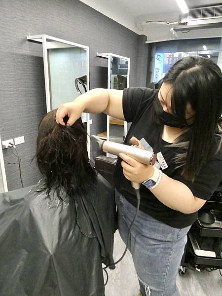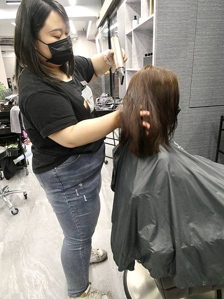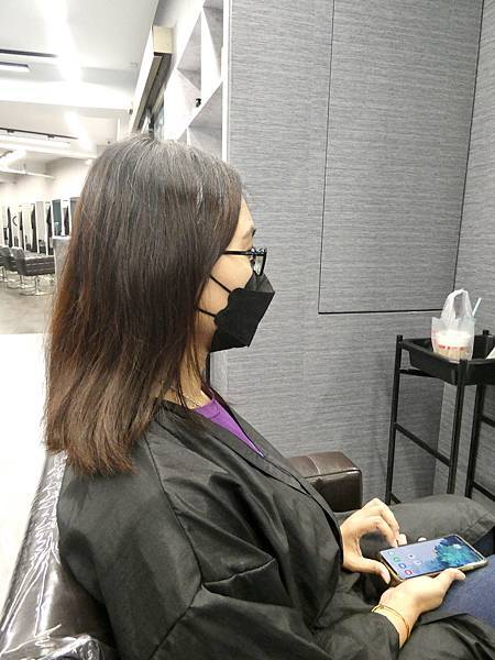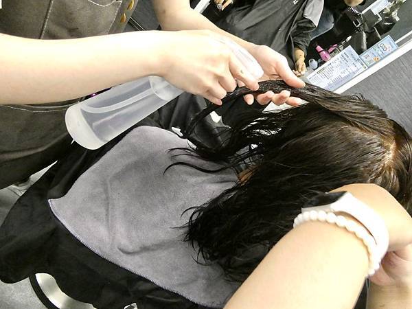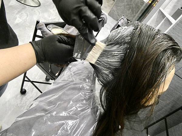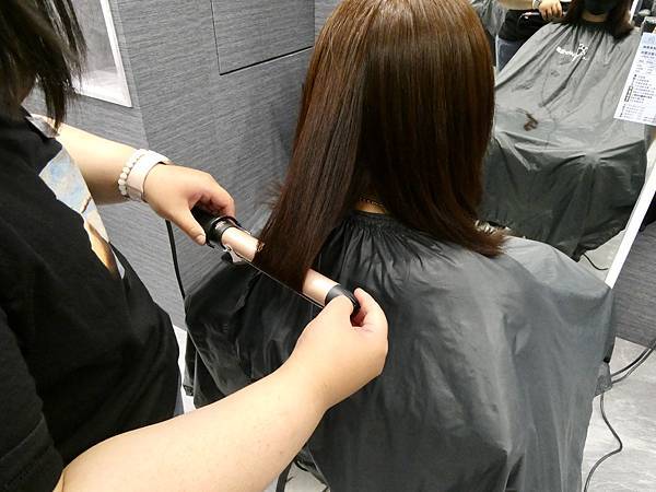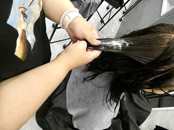 討論完之後,設計師說我們先染髮再護髮,我幫妳挑選的護髮是兩段式護髮,然後再吹整修剪,最後電棒。