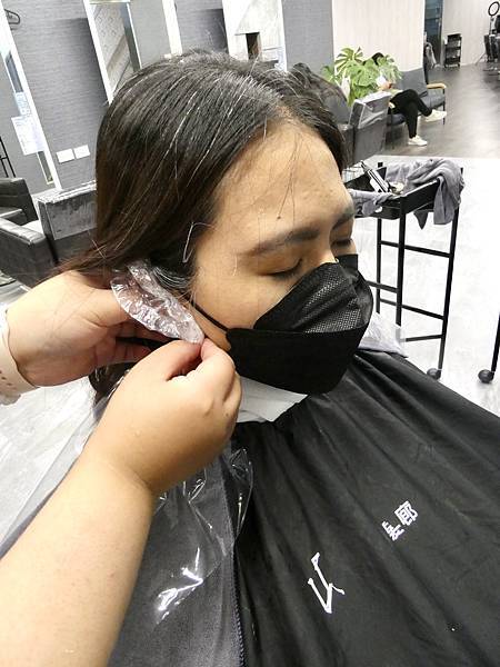 染髮前,設計師先幫閨蜜把耳朵保護好。