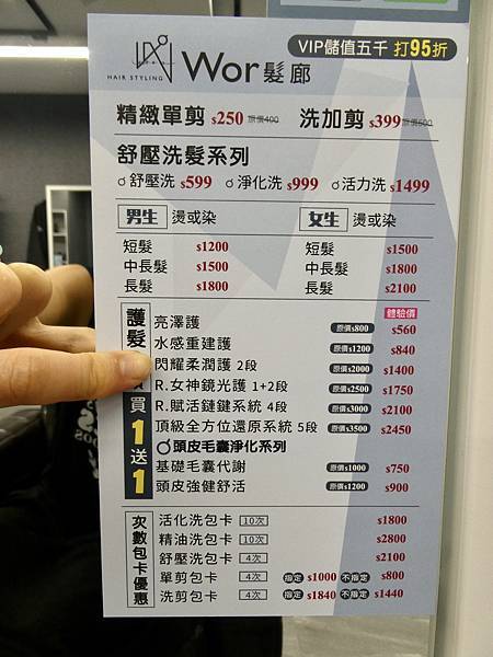 這是wor hair髮廊基隆店的價目表,我真的覺得很平價呢!不貴。