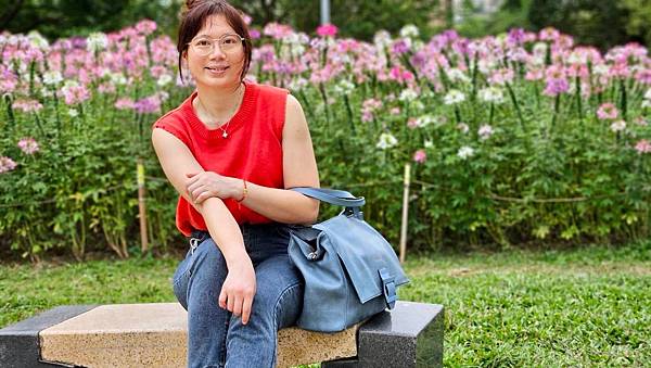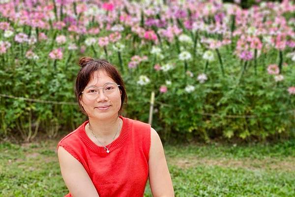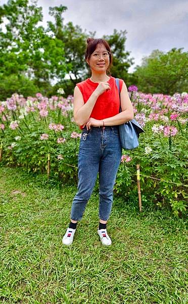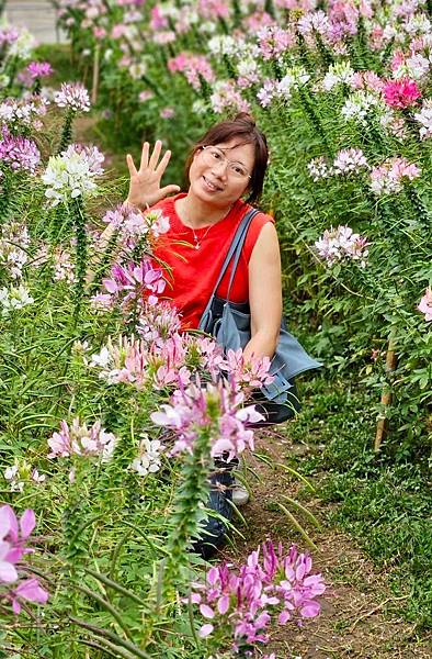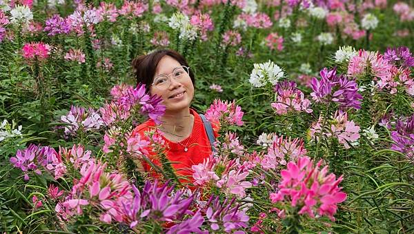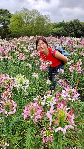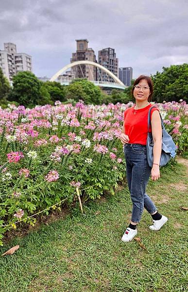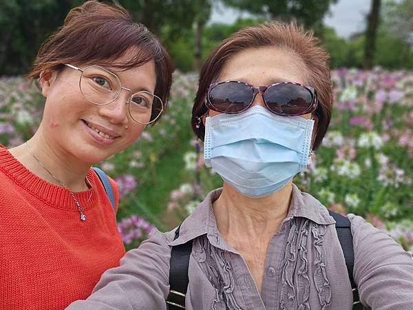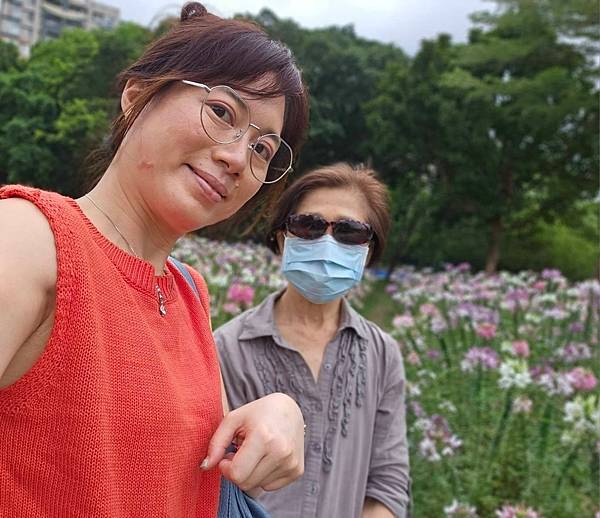 我跟媽媽也利用漂亮的醉蝶花海在古亭河濱公園花海區一起自拍,留下紀念。