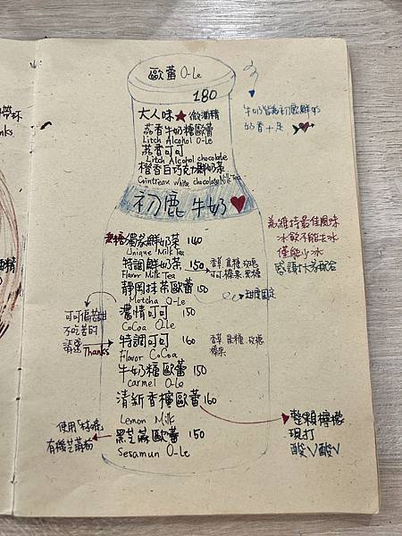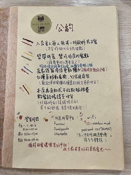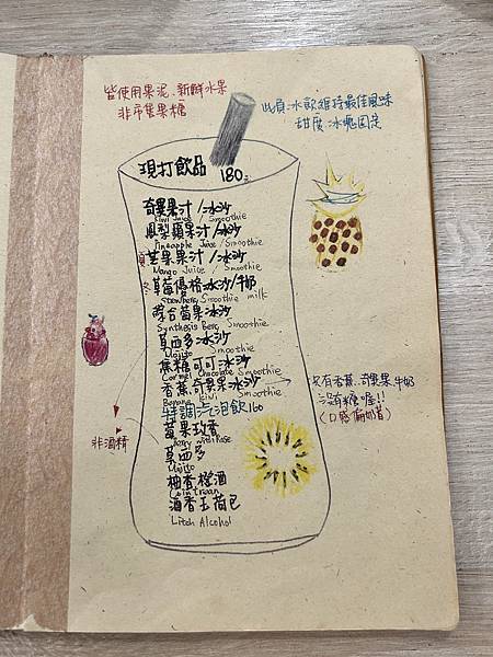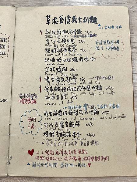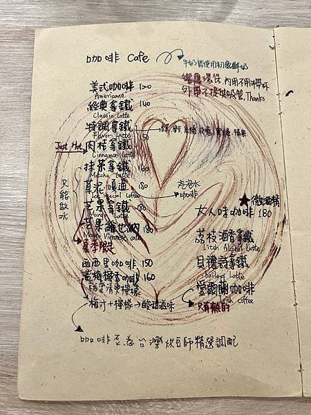 草泥CAFE的菜單,他們的菜單很用心誒!都是用手寫的,而且字很美呢!