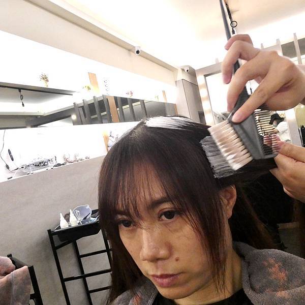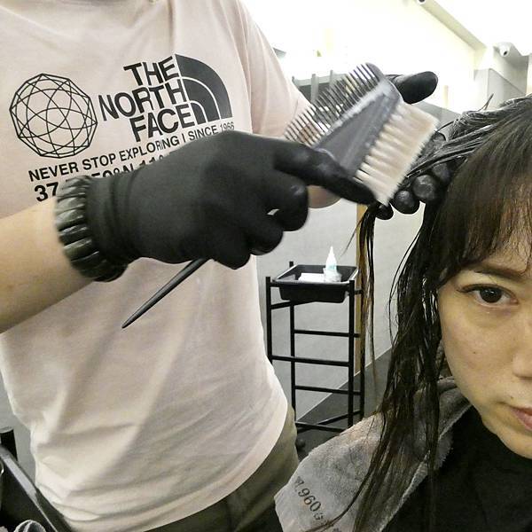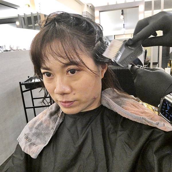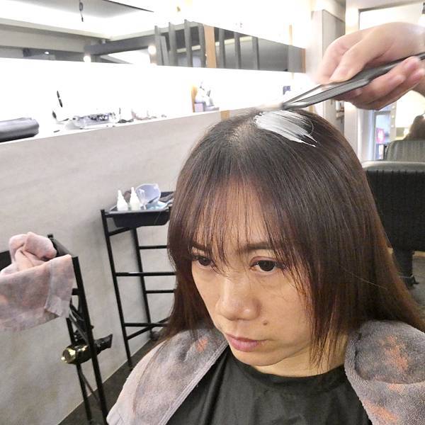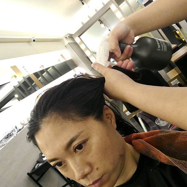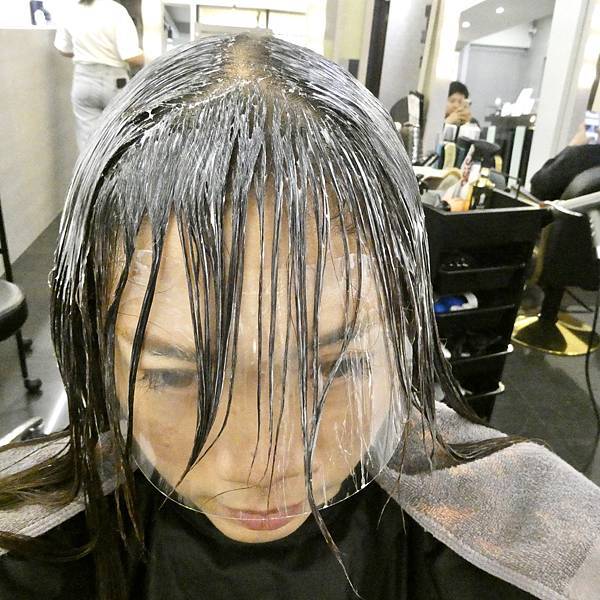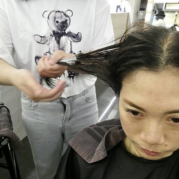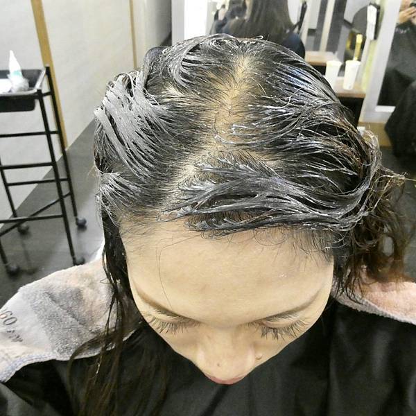 第一步先上燙髮藥膏,以上面為主,阿丹設計師說下面不理他,長度維持不變。