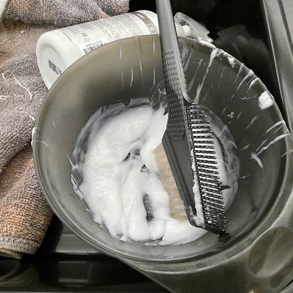 第四步護髮,娜普菈三段式護髮,先使用第一劑,還要搭配水。