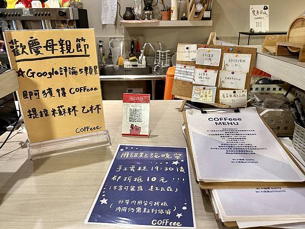 就這樣誤打誤撞兩人進入了這間早午餐,店名我也覺得很可愛,就叫做coffeee早午餐咖啡。我也來不及搜尋評價,事後吃後發現不錯吃,因此寫了這篇文章,查了評價,還不錯誒!google評價coffeee咖啡早午餐有4.2顆星,coffeee咖啡早午餐還不限時,是不是更優呢!