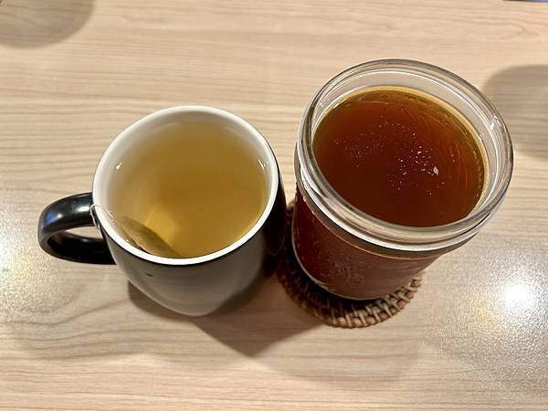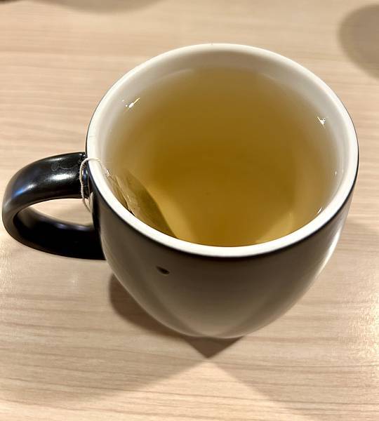 我們的早午餐有附飲料,我點熱綠茶,熱綠茶就是一般的茶包,喝起來沒什麼特別。