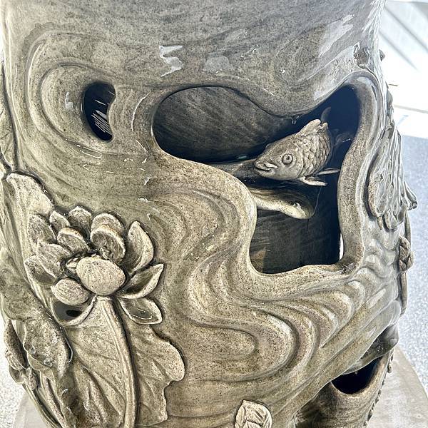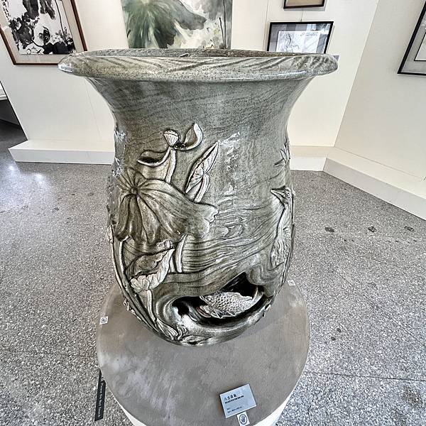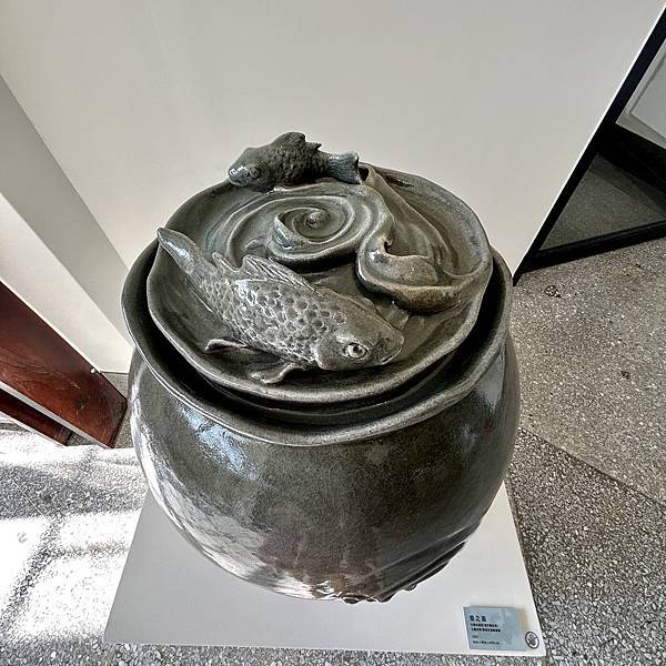 有些藝術品真的都很美,林文嶽藝術家的陶瓷都呈現立體的感受,這個陶瓷藝術上面有『活魚』的感覺,在陶器上悠游的游來游去,就像他的創作理念一樣『活』體展現,以『活』為主。