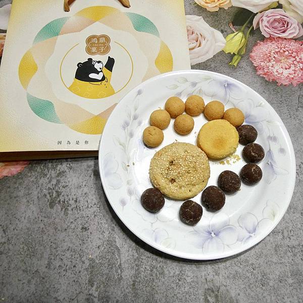 禮盒就是要買不一樣的呀!鴻鼎菓子有名的不只有曲奇餅,還有其他名產,這次禮盒有討喜酥白芝麻原味、討喜酥亞麻籽鹹蛋黃、法式黑巧克力雪球、鳳凰酥、法式起司雪球,五種組合的禮盒。