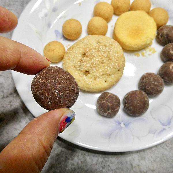 法式巧克力雪球,巧克力濃郁,還帶有巧克力脆片的口感,除了綿密之外,加上巧克力的口感,這個是我跟妹妹的最愛,我還喜歡搭配咖啡來吃我的法式巧克力雪球,帶有一點點苦苦的巧克力,微甜的口感,搭配咖啡是最配。
