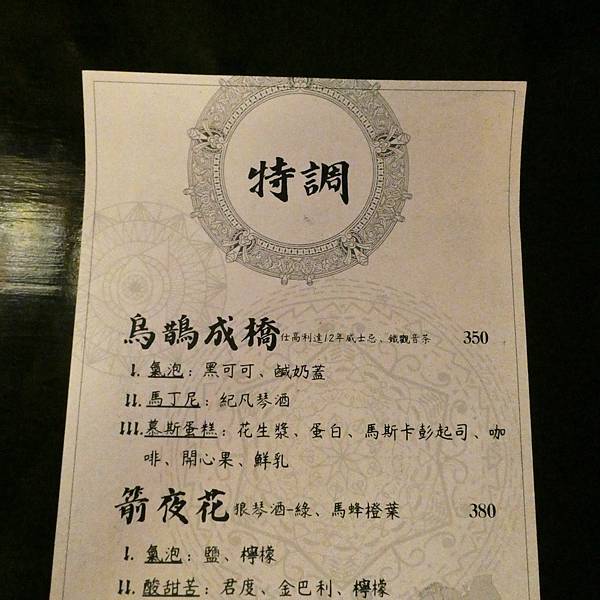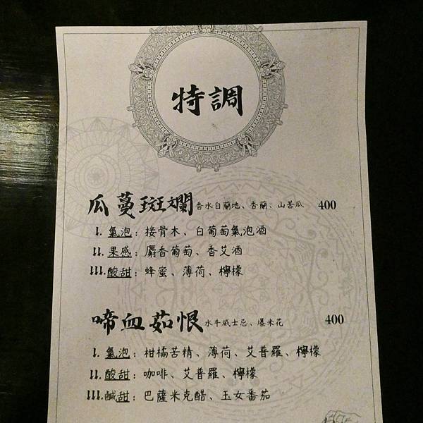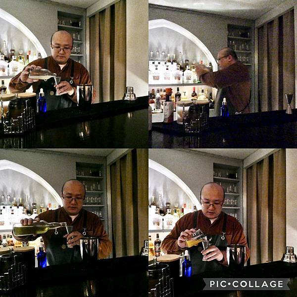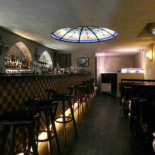 我跟閨蜜進到酒吧後,發現酒吧的設計很西洋,有教堂的感受,因此我特別問了一下為何老闆要打造這樣的酒吧!發展酒這個事情是在中古歐洲世紀,大概11~13世紀,掌握鍊金術跟製酒業這塊主要是以修士為主,製造酒之前大家都是為了要治病,所以才會以教堂的模式來產生這間酒吧。