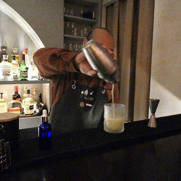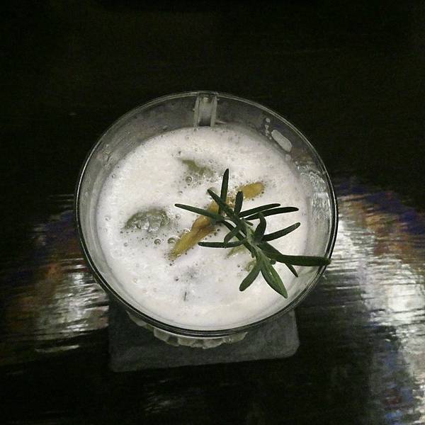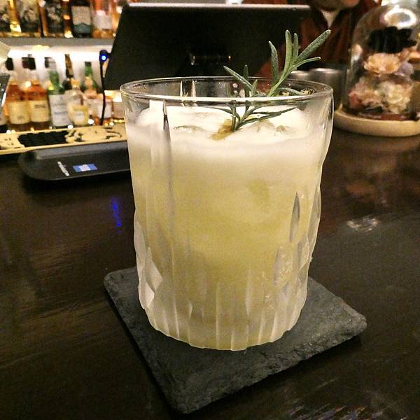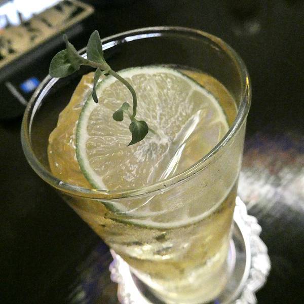 這杯口感,西洋梨跟檸檬,有清涼的感受,還有西洋梨的口感,酒裡面有加台灣阿里山金萱茶,讓金萱茶泡在白蘭地裡,酒呈現出有點茶感受的微苦滋味,有茶的香氣跟白蘭地的感覺。