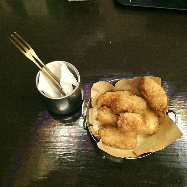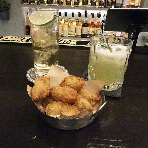 我們酒來了,發現還少了什麼,我們又跟老闆點了,炸牡蠣,熱騰騰的炸牡蠣,我吃下去整個驚豔,因為原汁原味,老闆沒有過度調味,牡蠣又大顆,不像外面粉超厚,這間Isotope Bar的炸牡蠣,牡蠣新鮮又大,皮薄還脆,牡蠣多汁飽滿,吃下去還爆汁,原汁原味新鮮好吃,記得喝酒不要忘了炸牡蠣這道小點。