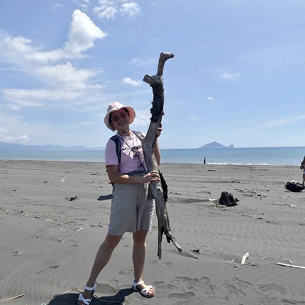 主辦單位帶我們到壯圍的秘境海灘,這個海灘真的好美,可以看到龜山島,還有網美盪鞦韆,幫我們講解如何挑選合法的漂流木的是海廢小王子,台灣現在海邊的漂流木不能亂撿唷!政府有明文規定,小心觸法,可以請合法的協助您們撿拾漂流木或者請他們帶您們去撿。