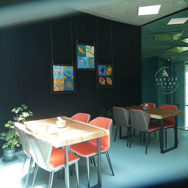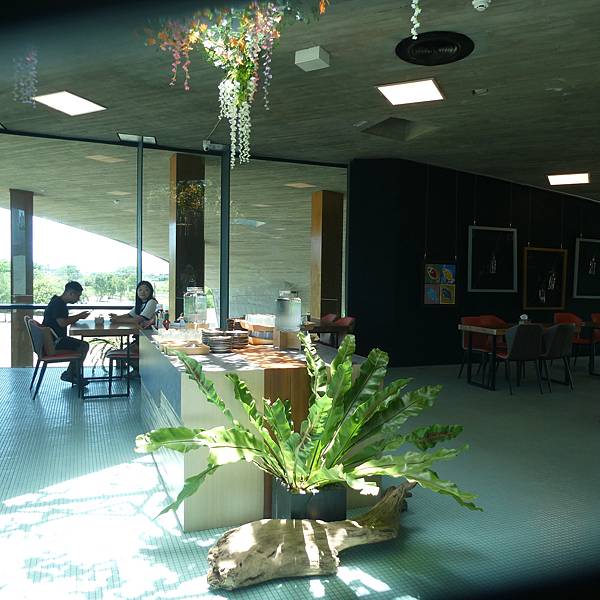 做完漂流木藝術之後剛好是用餐時間,主辦單位帶我們上宜蘭縣壯圍鄉沙丘旅遊服務園區二樓的芒草咖啡廳用餐,提供一個主餐含飲料的套餐組合,我點的是青醬蛤利義大利麵一盤與一杯柚子檸檬氣泡水,主辦單位還說這裡的工作人員都是在地的宜蘭縣青年,為了活絡在地社區,還有給青年有工作可以做,因此這些在地青年就在餐廳咖啡廳工作,活絡宜蘭壯圍。
