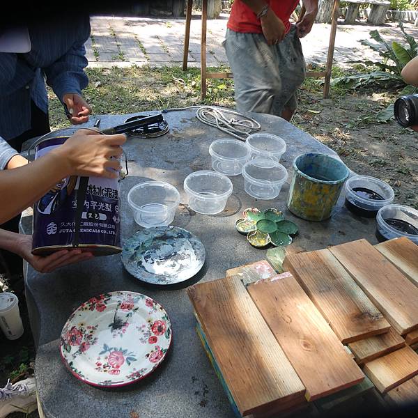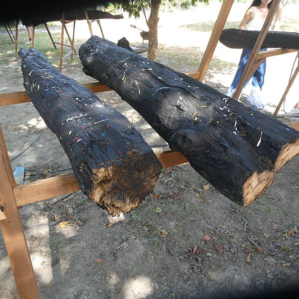 先指導我們要做怎樣的創作,兩人一組一個木頭,我們剛好三人,所以我們創作兩個木頭,先把木頭全部用水性漆塗黑,然後在上面灑上一些其他顏色的原料,成品其實很美的呢!希望我8月19日或8月20日來參加廢廢生活節的時候可以看到我們的集體創作,主辦單位說這個會放在一進來的門口。