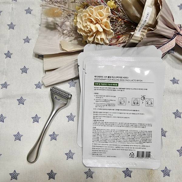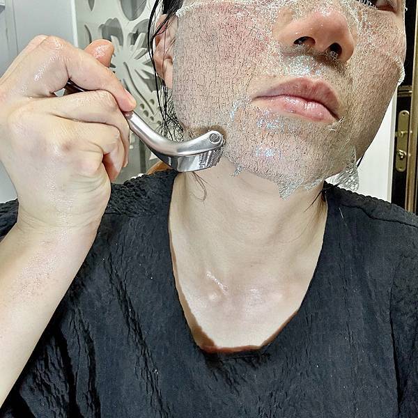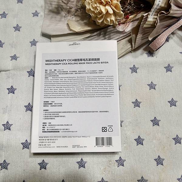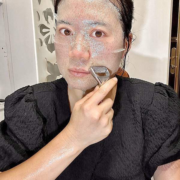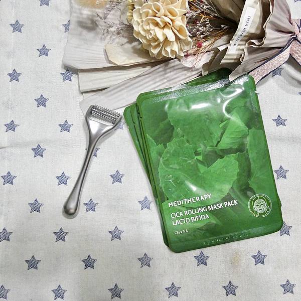 這個MEDITERAPY的CICA積雪草毛孔緊緻面膜+臉部按摩滾輪,使用後面膜拆掉來無須沖洗。