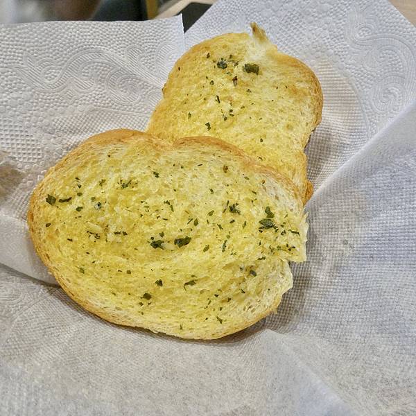 大蒜麵包0元,點排餐不管單點還是套餐,都會附,我最喜歡吃排餐的大蒜麵包,一人一塊,香濃好吃。