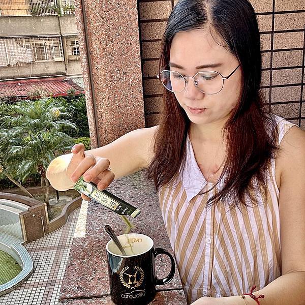 沖泡青汁活萃泱膳青汁,真的很好喝,濃郁的抹茶口味,直接加入開水、牛奶、咖啡(自己發明的青汁咖啡)味道也不錯唷!喜歡嚐鮮的也可以試試咖啡青汁。加入牛奶就像抹茶牛奶一樣,加入開水就是抹茶。