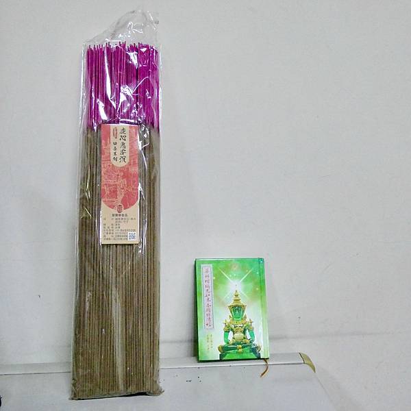 看完後,我就透過網路網購購入聖寶華的虔心惠安水沉香丈六48.5公分四季系列一袋360柱與4H盤香珍藏老沉。