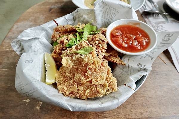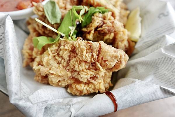 墨西哥風味炸雞,皮酥脆,肉多汁,好吃,有調味過的皮,炸得酥脆,我喜歡吃這樣的雞皮,酥酥脆脆的,但皮也不會很厚吃得到炸雞雞翅肉的多汁,肉也不柴,還有附檸檬,搭配檸檬吃酸酸鹹鹹的好吃,可以吃原味與擠上檸檬的香氣,多種吃法很讚。