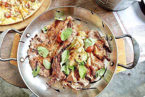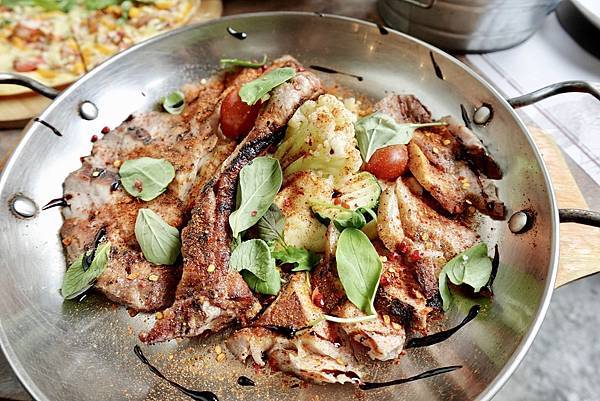 嫩香微辣戰斧豬排,這個戰斧豬排超好吃的,肉很嫩還有入口即化跟多汁的豬排肉,微辣的口感配上薯泥,還有節瓜跟花椰菜,豬排不油膩搭配青菜很絕配,還有一些微辣的辛香料,香氣十足又好吃。