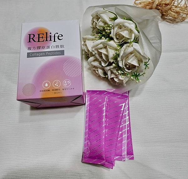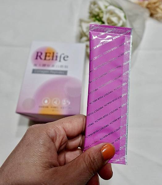 我的吃法是早上起床,吃完早餐後服用一包RElife複方膠原蛋白胜肽。
