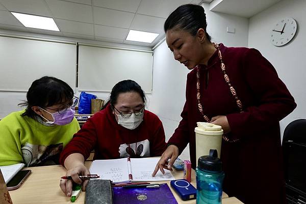 大家都很認真,老師來到桌邊指導同學,有問題也可以隨時問。