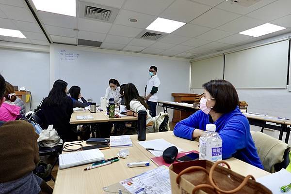 一進到教室,助教就幫我們學員分好組,上課以組為主,上課前會先讓我們小組自我介紹,介紹完之後,請林滿圓老師來正式講課。