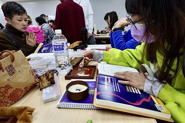 一組六人,老師也準備一組四個米卦工具,有書有器具,還教我們怎麼利用工具書。