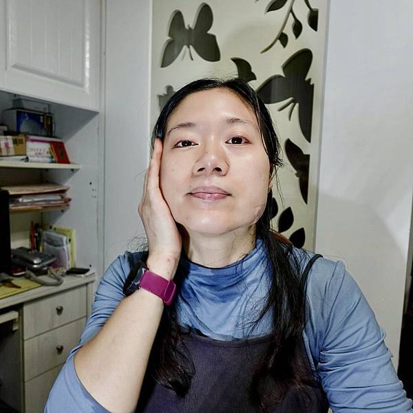 這是使用後的肌膚,自然光澤的呈現,我很喜歡,這張照片完全沒修圖唷!
