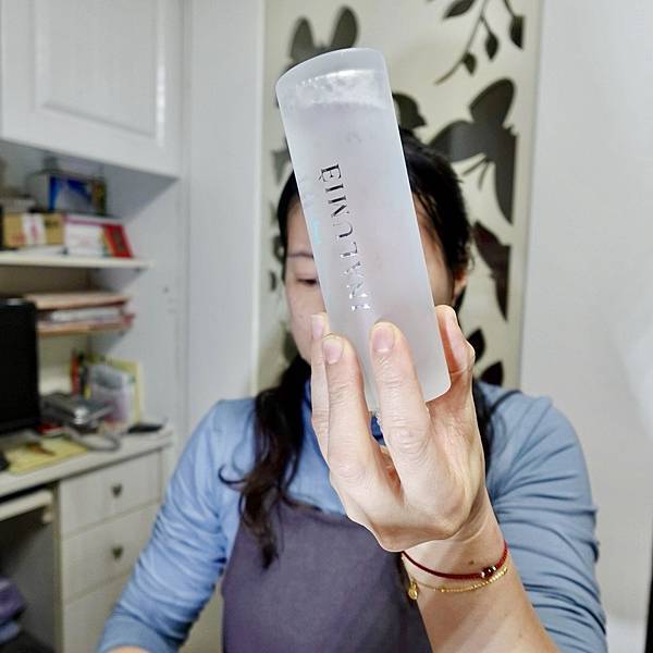 倒出適量INALUMIE芙木之光-多重玻尿酸保濕精華化妝水。