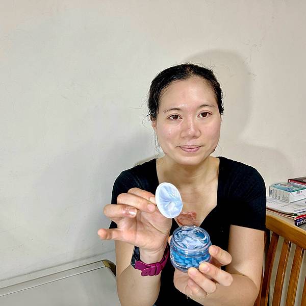 用附贈的挖勺取出適量的凝膠,混合水分凝膠與膠囊。(記得要混合均勻)