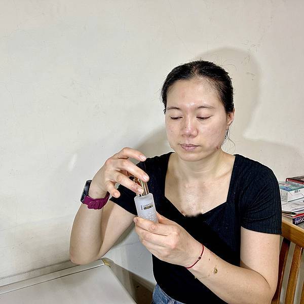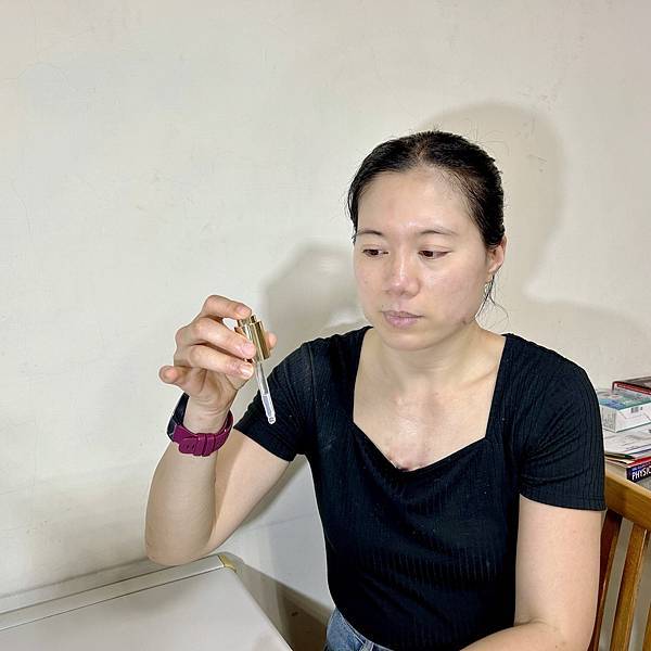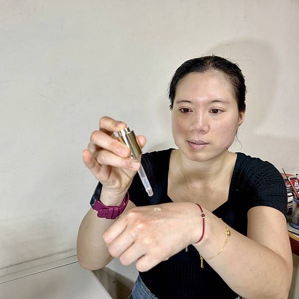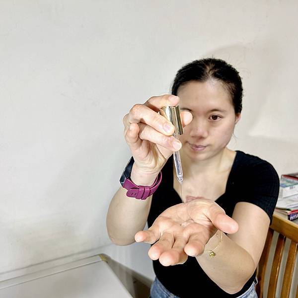 先用滴管取出適量的極效水凝亮采啟動精華在手掌,可以兩手均勻沾上或者用手指把精華液點在臉部四周。
