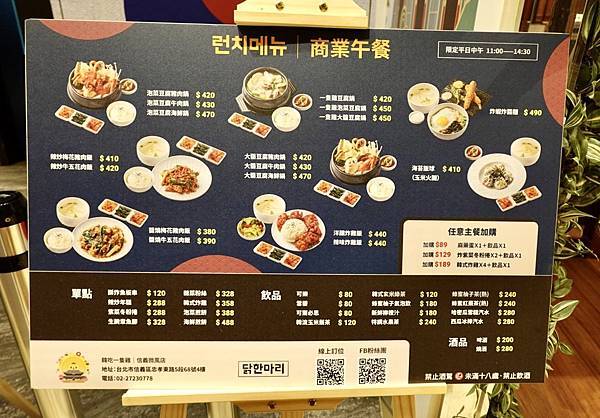韓吃一隻雞的菜單