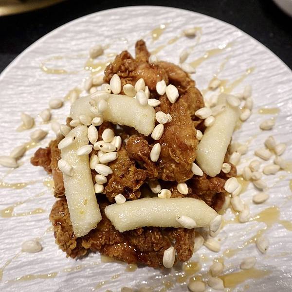 甜甜口感的炸雞,搭配蜂蜜有不一樣的味道,雞肉皮很酥脆,肉多汁 年糕蜂蜜也不錯,這道菜我超愛。
