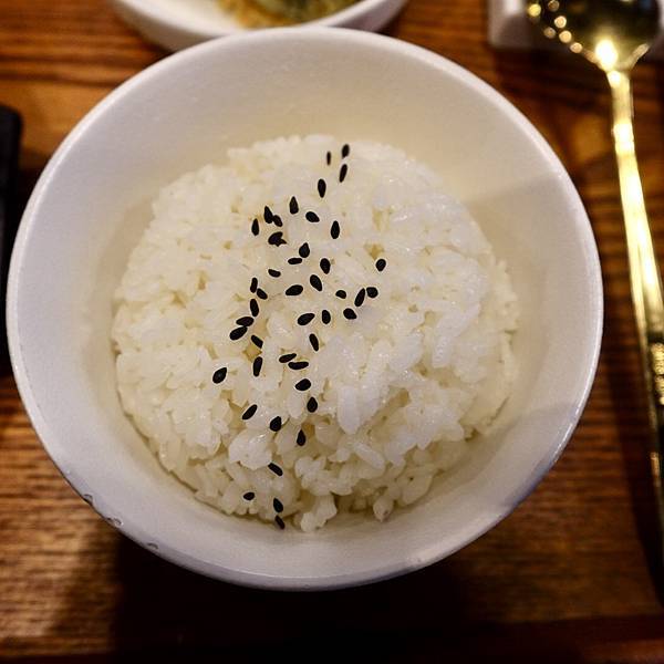 白飯一碗上面還有芝麻粒。