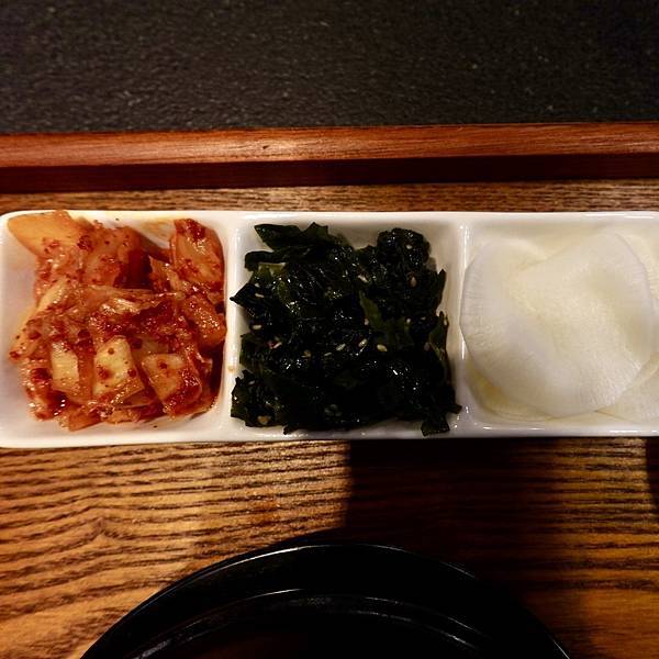 原本商業午餐就有的三道小菜,我最愛醃製蘿蔔,泡菜是很道地的韓國泡菜。