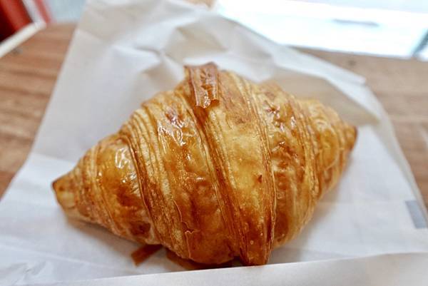 另外我又點了原味可頌,原味可頌不是偏甜的是偏鹹的,可頌的外面酥脆裡面是鬆軟,微鹹的口感,可頌真的好吃,來吃記得要買唷!