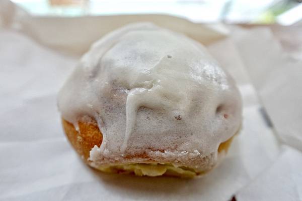 肉桂捲,這也是麵包類的點心,肉桂捲上是牛奶奶霜,肉桂濃郁,上面的牛奶奶霜帶出有不同的口感,這顆肉桂捲加牛奶糖霜,很特別好吃的口感。