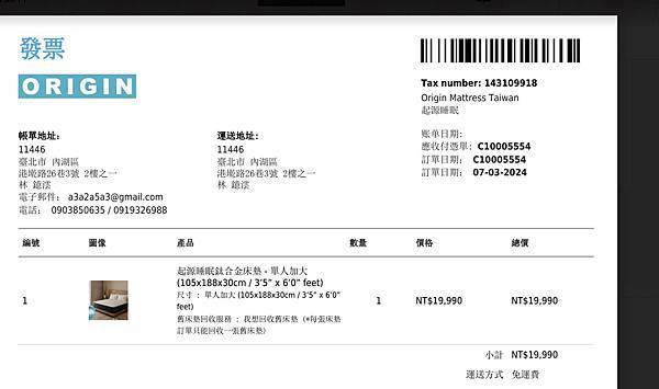 我在購入這個鈦合金床墊之前,我也跟起源睡眠通email,起源睡眠有兩種床墊,一個是起源睡眠-混合式床墊,一個是起源睡眠-鈦合金床墊。