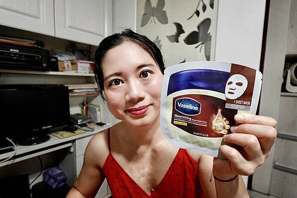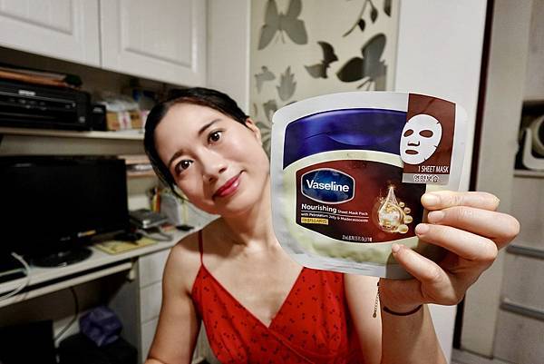 回台後就把一片一片的Vaseline凡士林面膜送給親朋好友,這一片聽閨蜜說也不貴,超火爆、超爆紅,一片只要台幣20元,且有保濕、補水和滋養三款。可以根據肌膚狀況去挑選,她就拿一片送我,她送我的剛好是滋養面膜。