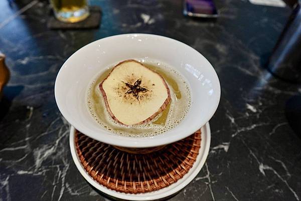 蘋果烏龍茶,我們看到時以為是非酒精飲料,老闆來介紹才知道是一杯調酒超多人點,因而挑選了這杯調酒。