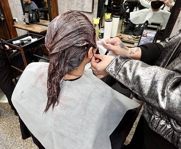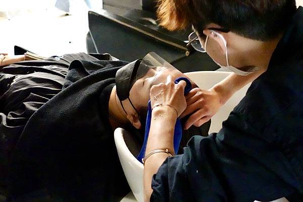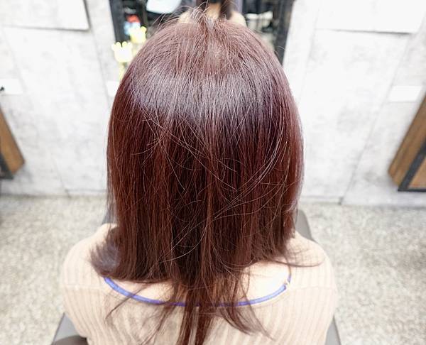 染後去洗髮,髮廊跟閨蜜說,我要先幫妳頭髮上的染劑先沖掉,外面的髮廊都會直接用洗髮精,但是這樣不會讓頭髮變好,只會讓頭髮變得更糟糕,頭髮本身PH值介於4-5.5之間屬於弱酸性,先沖洗掉讓頭髮回復到弱酸性,最後使用洗髮精洗頭髮,閨蜜還跟我說Tiam Hair中壢延平店洗髮的手法很棒,很舒服,洗後幫閨蜜潤濕,完成洗髮之前還會在檢查皮膚上是否還有殘留染劑,幫閨蜜皮膚擦乾淨。