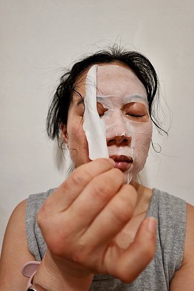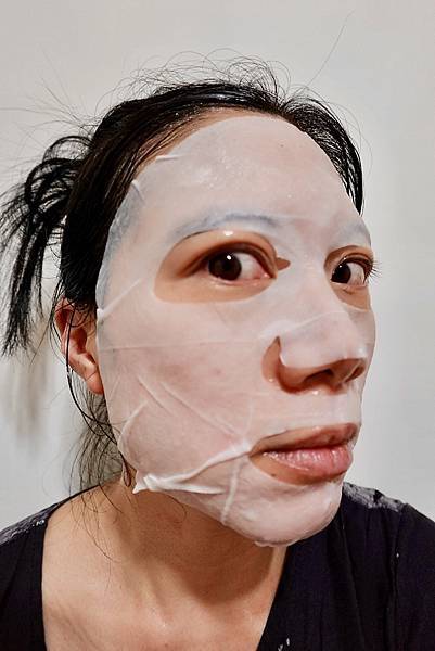 第一種是洗臉後直接拿出凡士林藍色保濕面膜,拆開後對準眼鼻嘴,直接敷在臉上,輕輕按摩面膜讓面膜與臉部緊密貼合,面膜其實很服貼,大概等待15-20分鐘後取下面膜,依自己狀況看要不要做後續保養。